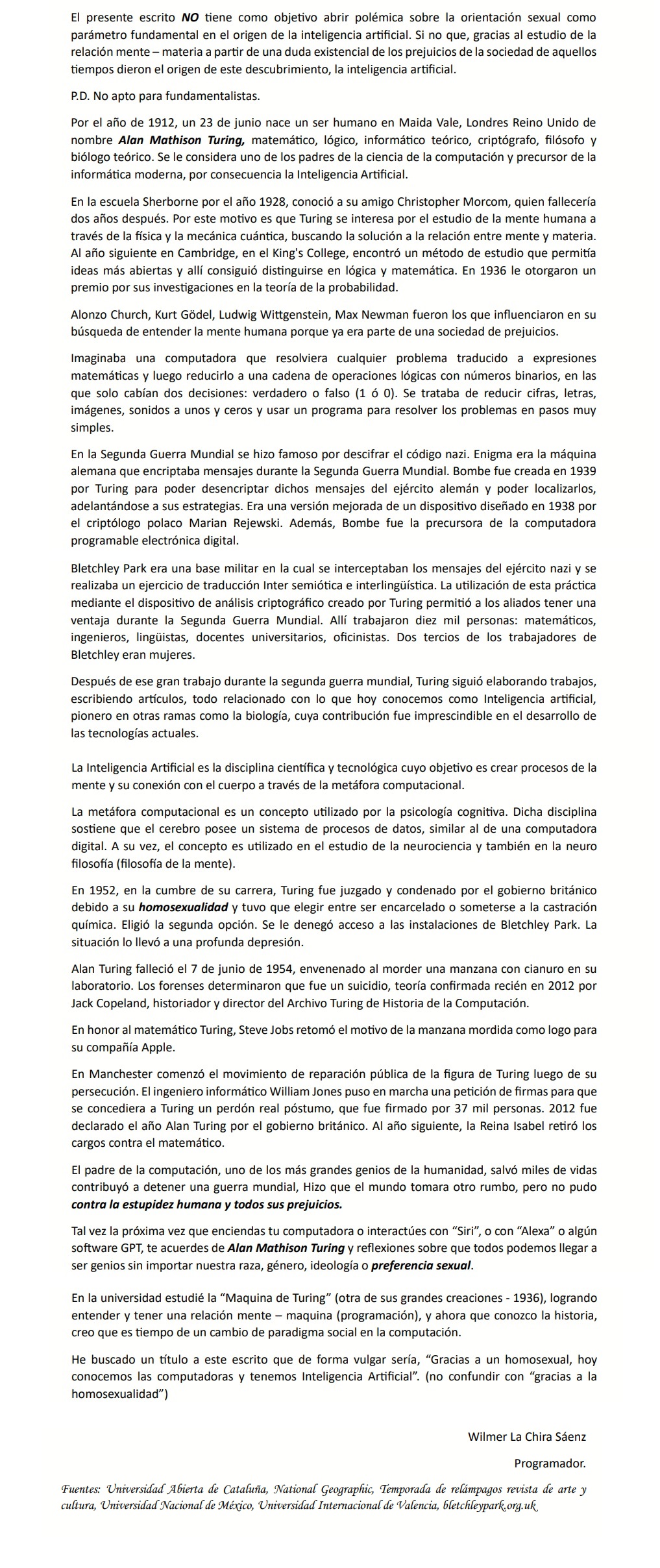 Para empezar, quiero compartir un ensayo que escribí y espero sea de su interés y no polémico en todos los ambitos. Gracias |